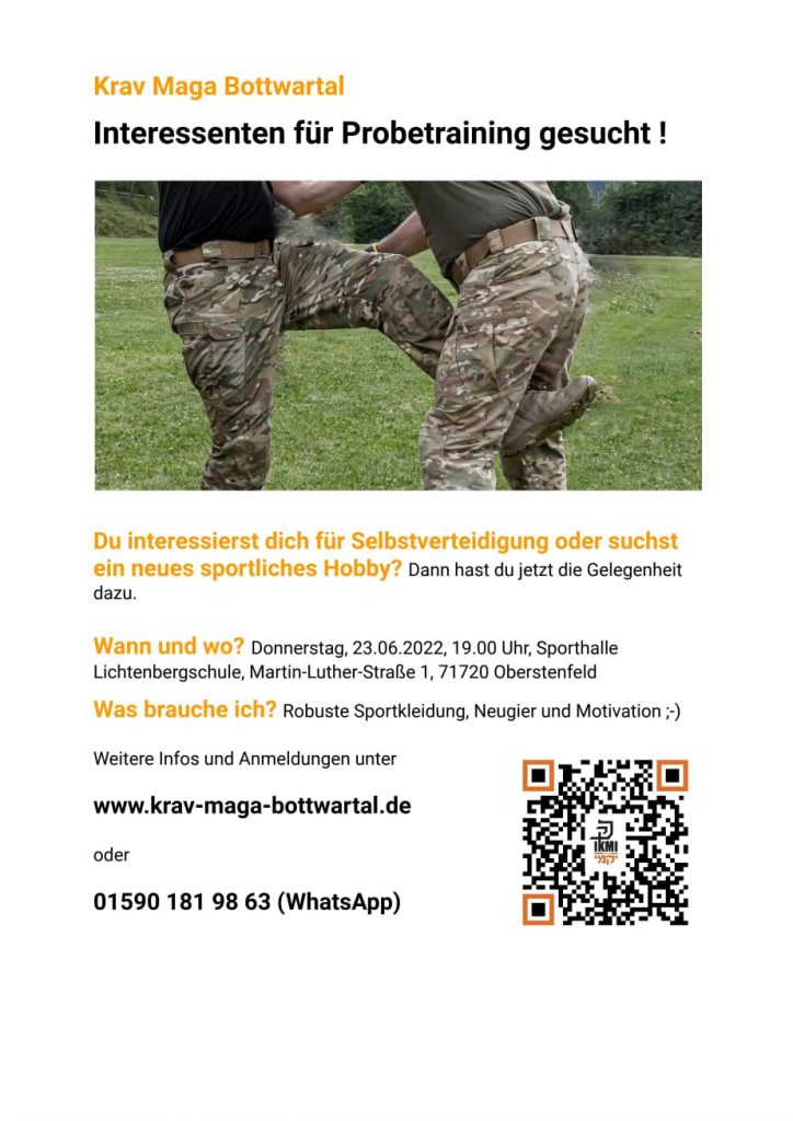 Probetraining am 23.06.2022 Beitrags-Autor:Alex182 Beitrag veröffentlicht:17. Juni 2022 Beitrags-Kategorie:Uncategorized Beitrags-Kommentare:0 Kommentare Probetraining am 23.06.2022, 19:00 Uhr in Oberstenfeld, Martin Luther Straße 1, Sporthalle der Lichtenbergschule. Anmeldung gerne über den Reiter „Probetraining“. Das könnte dir auch gefallen Outdoor Camp 2025 19. April 2025 Angepasste Trainingszeiten Einsteigerkurs 4. Oktober 2022 Krav Maga Kindertrainig 11. Mai 2025 Schreibe einen Kommentar Antworten abbrechenKommentarGib deinen Namen oder Benutzernamen zum Kommentieren ein Gib deine E-Mail-Adresse zum Kommentieren ein Gib deine Website-URL ein (optional) Meinen Namen, meine E-Mail-Adresse und meine Website in diesem Browser für die nächste Kommentierung speichern.